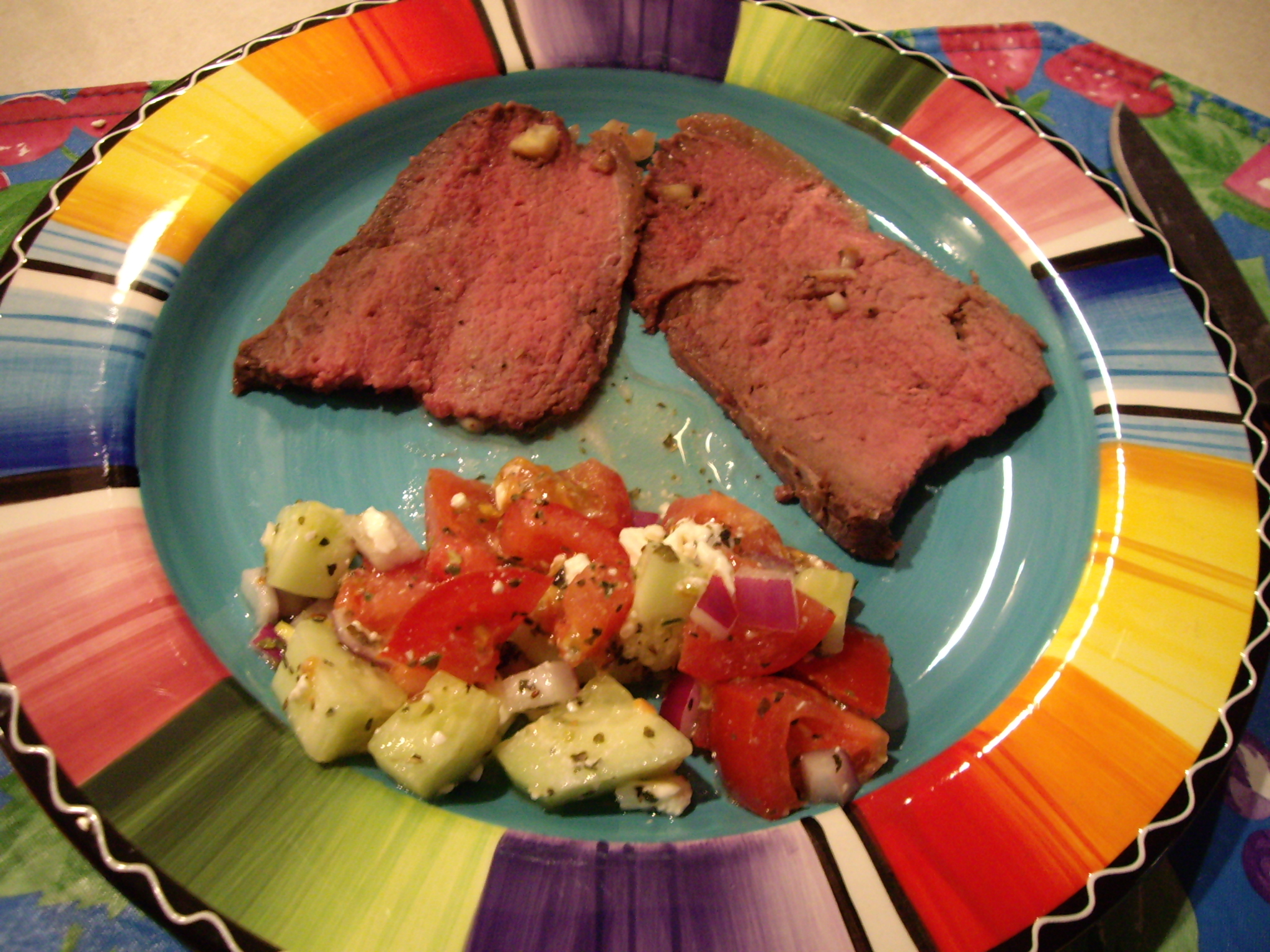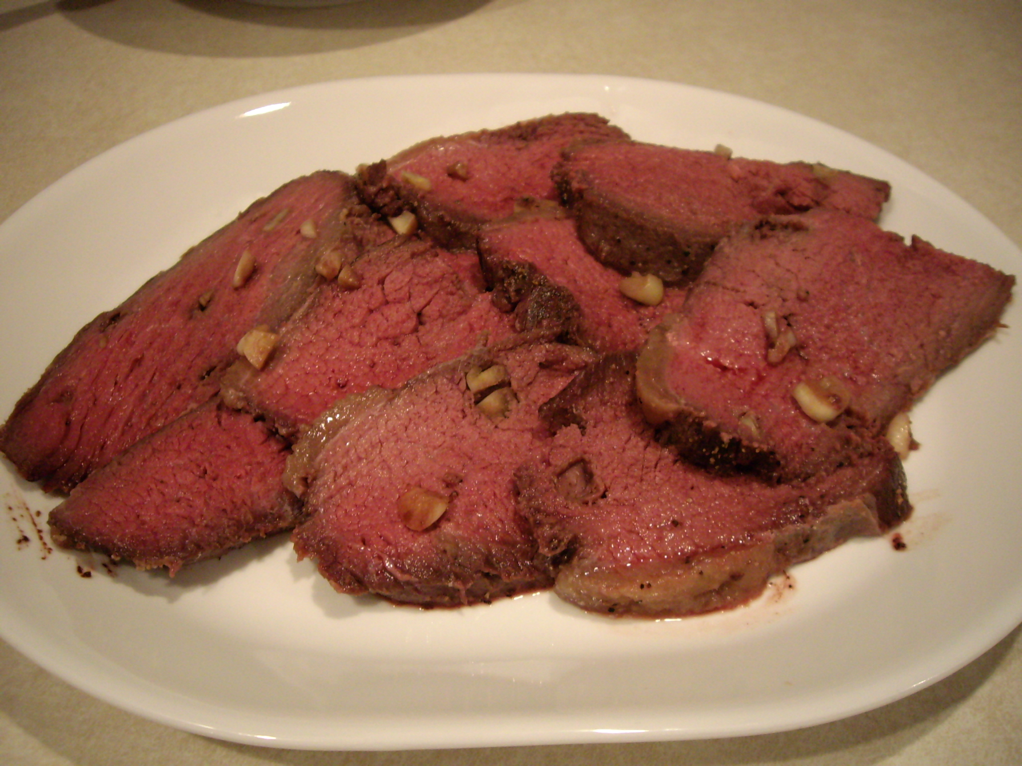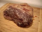 I recently came up with an easy roast beef recipe. I was scouring my cookbooks and the internet for a way to cook a roast I had gotten at one of those buy one get one free sales. I was looking for anything that wasn’t too complicated for my bottom round roast as I had never made a roast beef before. One thing you need is a good meat thermometer that you can keep in the roast while it’s in the oven. I found recipes for sirloin, bottom round and so on. The recipe below is what I came up with. It cooks for a while nice and slow which is one of the reasons it comes out so good. The salt tenderizes it as well. You can serve this with a nice horseradish sauce** or a mustard sauce**.