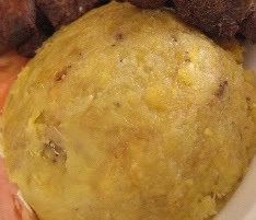 1. Bring the water and 1½ tablespoons salt to a boil. Add plantains, cover and boil rapidly for 20 minutes. Drain, peel and mash together with the butter, ½ teaspoon salt and cornstarch. Allow to cool slightly.