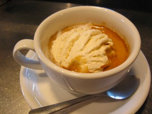 An affogato (“drowned”) is a coffee-based beverage or dessert. It usually takes the form of a scoop of vanilla gelato or ice cream topped with hot espresso coffee. This recipe will use coffee flavored ice cream and rum as well. If you don’t like coffee ice cream you can use vanilla or chocolate or any other flavor you like. If you are watching calories you can even use low-fat ice cream. Either way this is a unique Italian dessert. Coffee and dessert all in one! Saves time! If you want you can even add whipped cream to top it off! So much for low cal! This version of the recipe also has dark rum for an extra special treat.