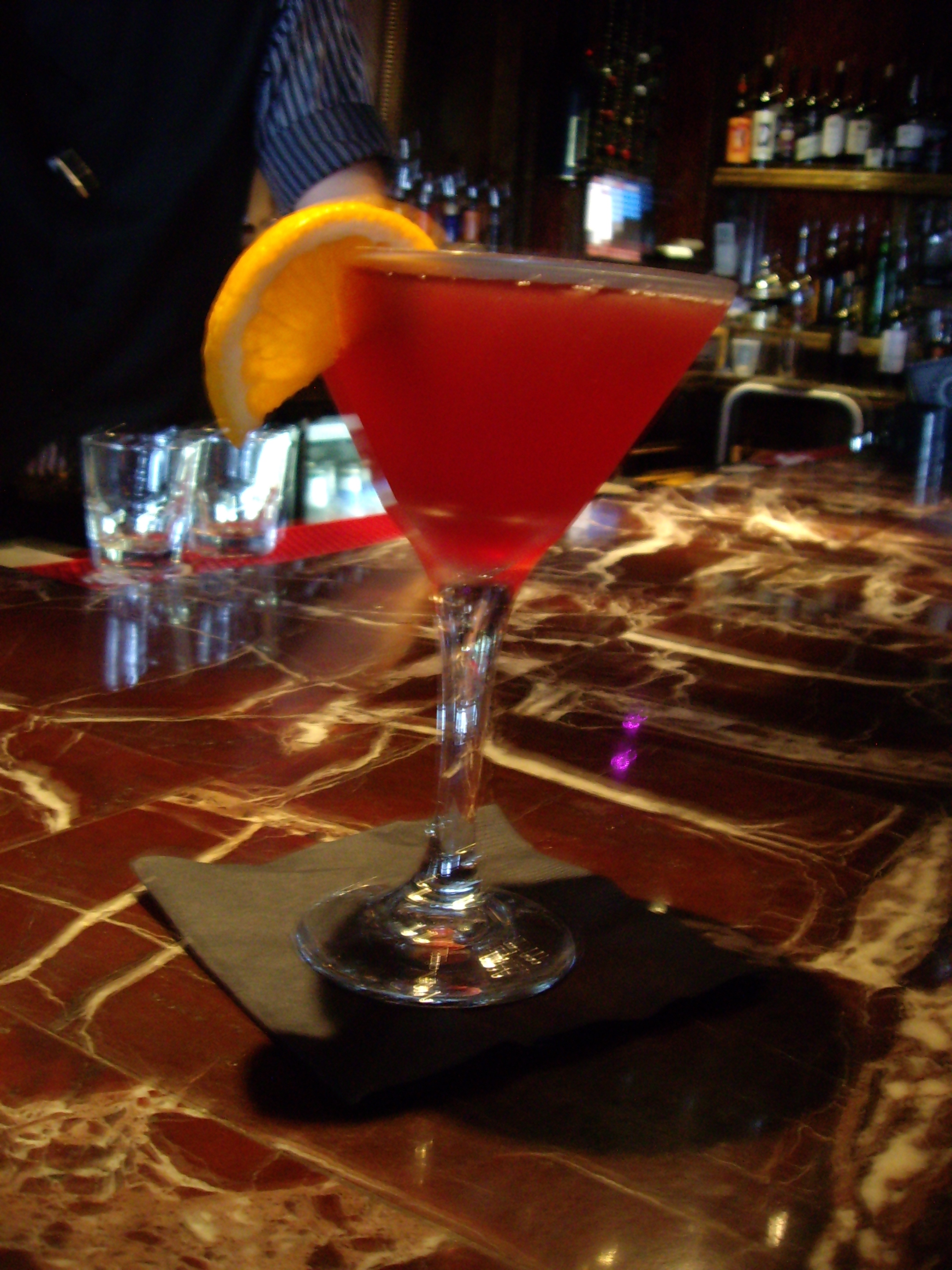 As promised, here is the martini that my cousin Linda had several times when we ventured into the Tini Martini Bar (http://tini-martini-bar.com/) at the Casablanca Inn in St. Augustine. As I said John and I had stayed at the Inn 3 years ago and had fallen in love with the place. Especially after we found out they just opened a martini bar! We were sold. So when we went back the first time it was great. The martinis range from $10.50-$12.50. Yes a little on the higher end BUT they were definitely more than 6 ounce martini glasses. I would say 8 ounces and they filled them to the tippy top! None of this space at the top as most places do. So after we took Linda there the first time we knew we’d be back during our visit. And one afternoon during the daily thunderstorm at about 2pm, we sought shelter at our favorite bar. Thanks to our bartender Jason we were very happy indeed! Ghosts and all! So here is the tini martini that Linda had. I am using measurements that will make a 6 ounce martini. As always feel free to add more depending on your glass size!
