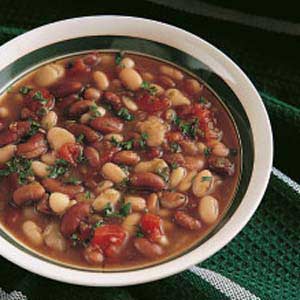 2. In a large pot, stir together all the remaining beans, tomatoes, broth, salsa, cumin, red pepper flakes, and garlic.