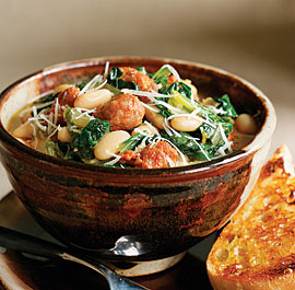 I’ve been trying to come up with a recipe today and my mind just keeps getting sidetracked. It’s Thursday, I have an hour left before I go to “Happy Hour” with the neighborhood ladies and I am still sitting here wondering what to use in today’s blog. First I thought about doing a “happy hour” recipe, then changed my mind. I am clueless today. Good thing I don’t have to drive anywhere! We have it at our homes, we take turns once a month. So I just have to walk a few houses away. But I still want to make sure this is done BEFORE I go meet the ladies. So I was just looking everywhere for anything. It’s been one of those days today. Not much sun out and under 80 degrees for a change. It is fall after all! Then I came across an email I got from Fine Cooking. The recipe looked pretty simple and it’s pretty quick to make too. That is always a plus. If I had escarole in the house I’d make this tonight. But I don’t so I will make it next week. Hopefully I will get another cool “fall” day in Florida!