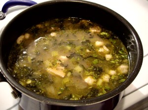- Add about 4 cups of the broth, beans, and kale. (I added another cup or so of the broth after I added other ingredients as it needed more liquid. It’s your choice) Heat to boiling and reduce heat. Cover and simmer about 10 minutes or so.