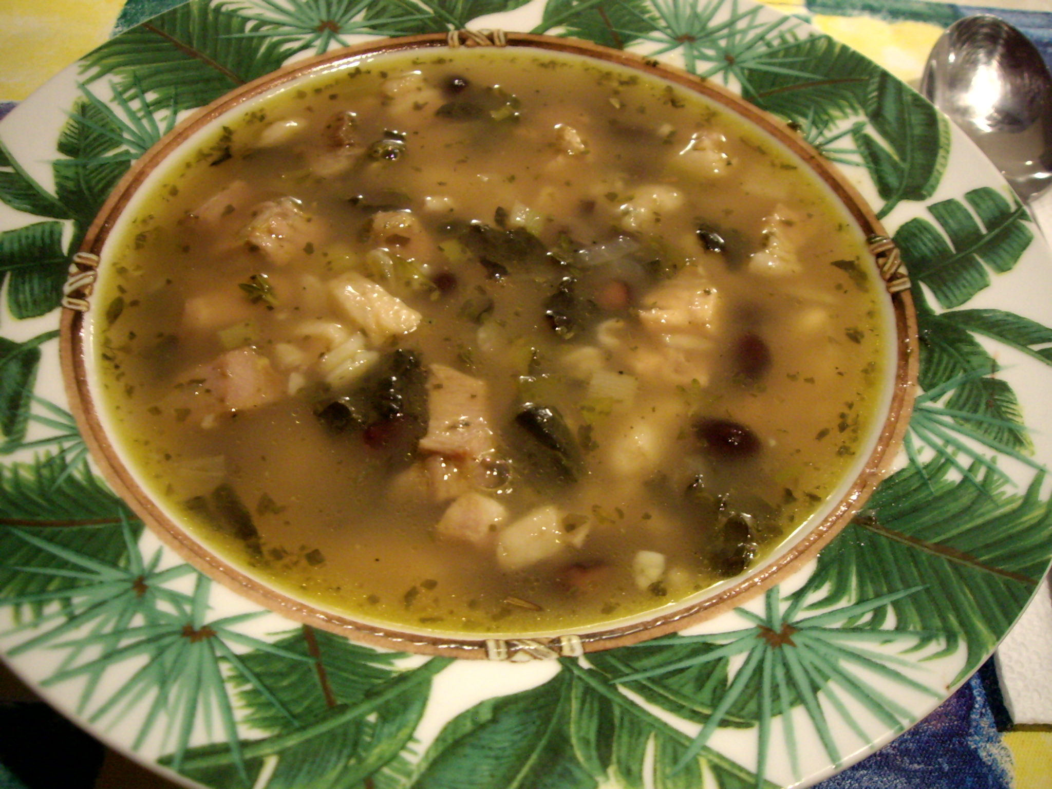 This soup came about because about a month or so ago I had bought this really inexpensive Boston Pork Butt Roast. It was a pretty big roast to begin with, I think 5 or 6 pounds. And with only two people in my house we had lots of leftovers. (I will post the recipe for that in the near future also) We ate the pork a couple of times the same week, then I decided to freeze the rest before it was lost forever. I think we got about 5 or 6 uses out of it! Well this week I decided I wanted to use up the rest of what I had in the freezer so I searched for any recipe with leftover pork. I would say 90% of the recipes I found were some kind of pulled pork. Not a fan. So I kept looking till I found the soup recipe. And voilà! I created my own version of a delicious hearty soup! I put kale in this soup also. That is another story! Let’s just say trying to make ‘kale chips’ didn’t work out so well and when you put leftover chips in a container, they don’t stay so crisp. So I just chopped them up and added to the soup. I was originally going to add spinach but the kale was there! It was perfect for the soup!