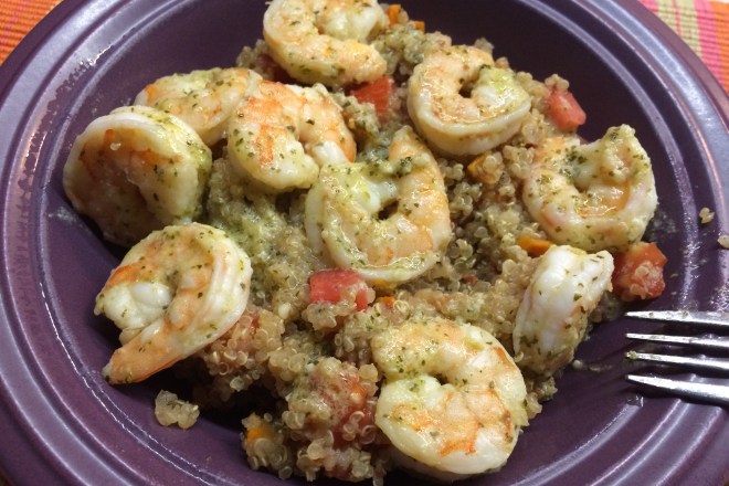 - Divide up the quinoa into flat bowls and top evenly with the shrimp mixture. Make sure the delicious juices are evenly distributed as well.
