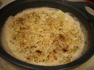 ½ of a spaghetti squash cooked and scraped out into a bowl. (Cook any way you are used to. I microwave it, cut side down in a shallow casserole with some water for about 10-15 minutes until soft)