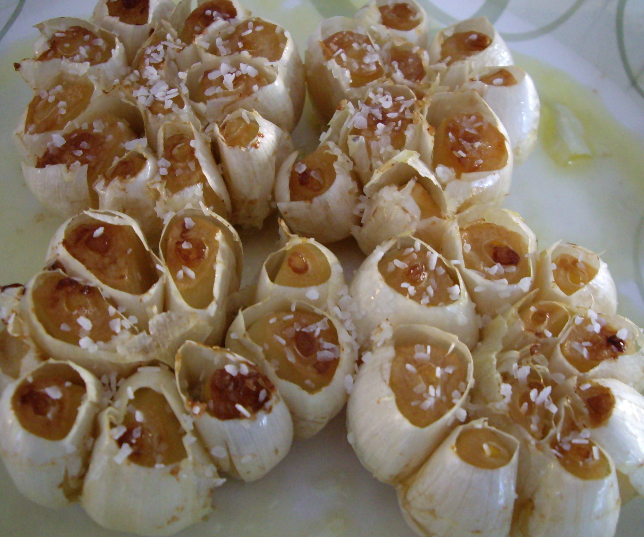 Well today the hubby and I were cleaning the house as that is now our weekend thing. (Have I mentioned I hate not working from home!) We also usually have a bottle of bubbly as well. Ok maybe two bottles. But today as a ‘snack’ with our bubbly we went with something different. I wanted to roast some garlic to make garlic butter and garlic mayo. Didn’t quite get that far today. I swear I roasted at least 20 heads of garlic (I buy those huge bags in BJ’s). My husband started to eat it right out of the roaster, so I continued. Discovering that eating the garlic this way was extremely addicting. I have one of those electric garlic roasters and use it all the time. Today it got quite a workout. I put a little olive oil and kosher salt in the little pan inside and let it roast. Once it’s done I sprinkle on a little more kosher salt for flavor. Eat it warm. It’s like eating a garlic candy or something. Soooo good. I can’t even tell you all how many we ate so far. Heads of garlic I am talking about remember.